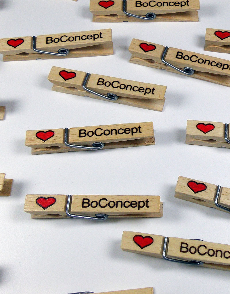 Glupperl oder Wäscheklammern mit eingebrantem Aufdruck als Werbeträger. Ein individuell gefertigter Brennstempel, unter eine Druckerpresse montiert ermöglicht einen kräftigen kontrastreichen Seriendruck. |