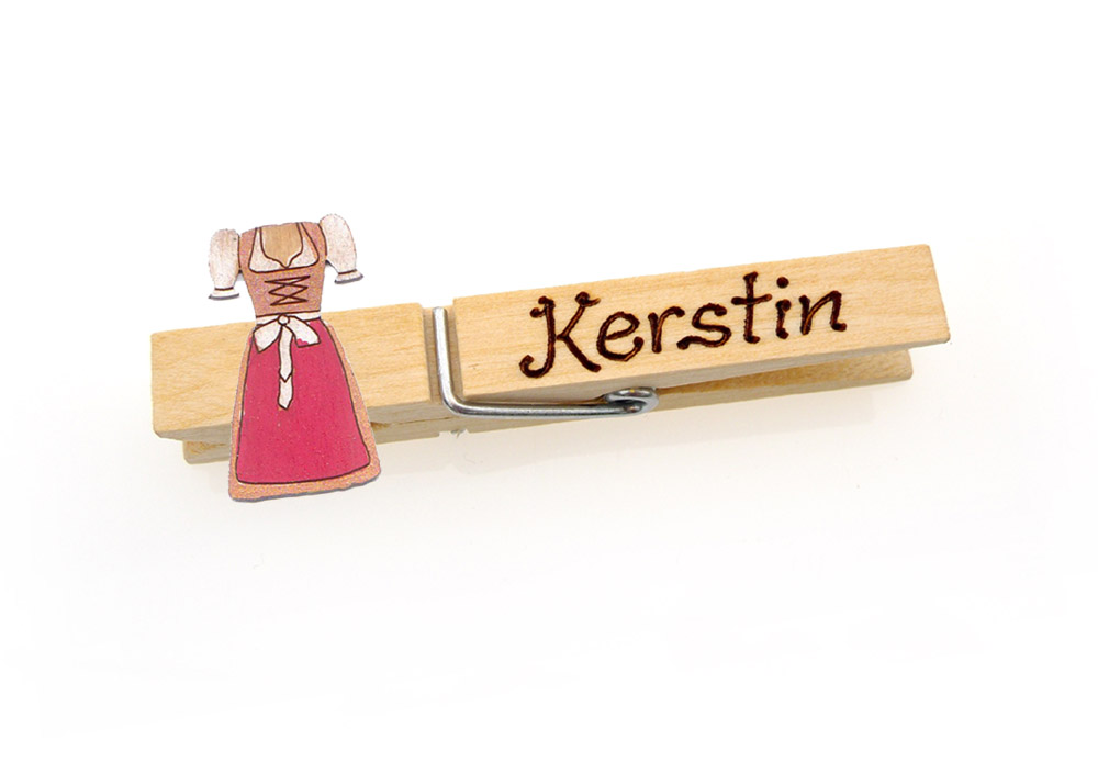 Wiesnglupperl, Wäscheklammer mit Namen |